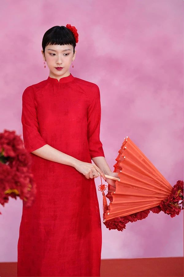 Áo Dài Cách Tân Chu Tường XÉO XỌ