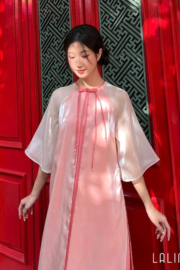 Áo Dài Cách Tân Cổ Tròn Thắt Dây Kiểu LALIN