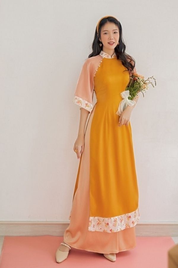 Áo Dài Cách Tân Cổ Viền Hoa Combo Bưng Quả 6 Bộ KHAMADE