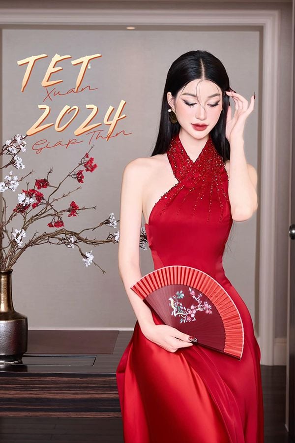 Áo Dài Cách Tân Cổ Yếm Đính Hạt GLAMDOLL