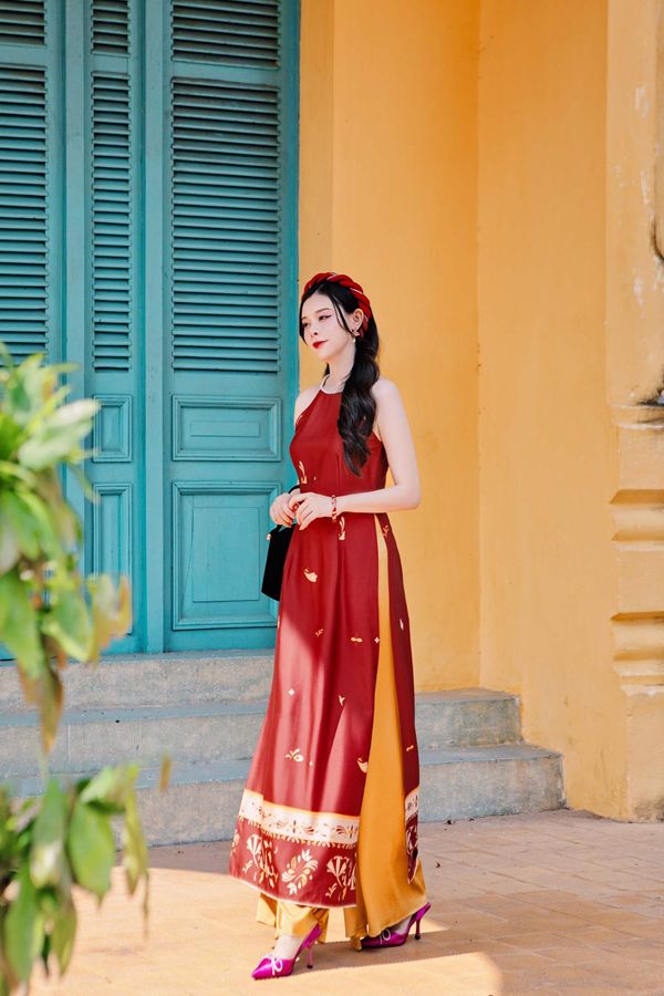 Áo Dài Cách Tân Cổ Yếm Họa Tiết SUMIRE STORE