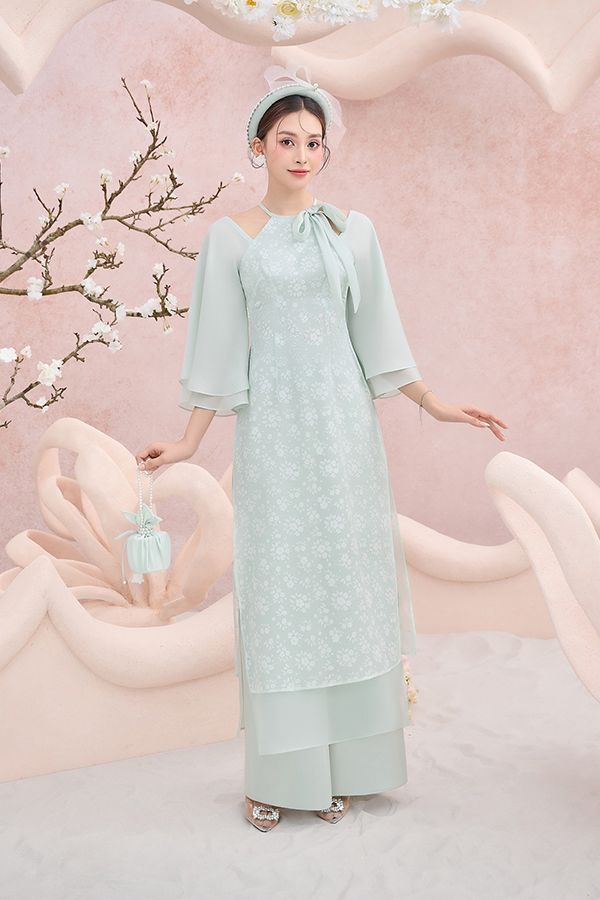 Áo Dài Cách Tân Cổ Yếm Tay Dài FLANE