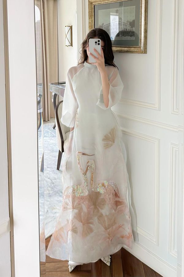 Áo Dài Cách Tân Họa Tiết MITA BOUTIQUE
