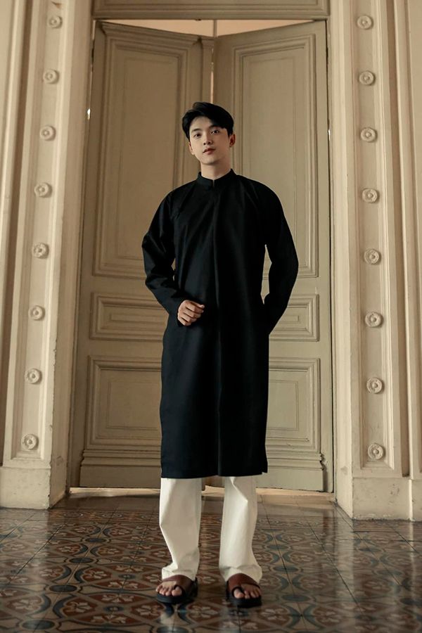 Áo Dài Cách Tân Nam Tay Dài Cổ Trụ KHAMADE