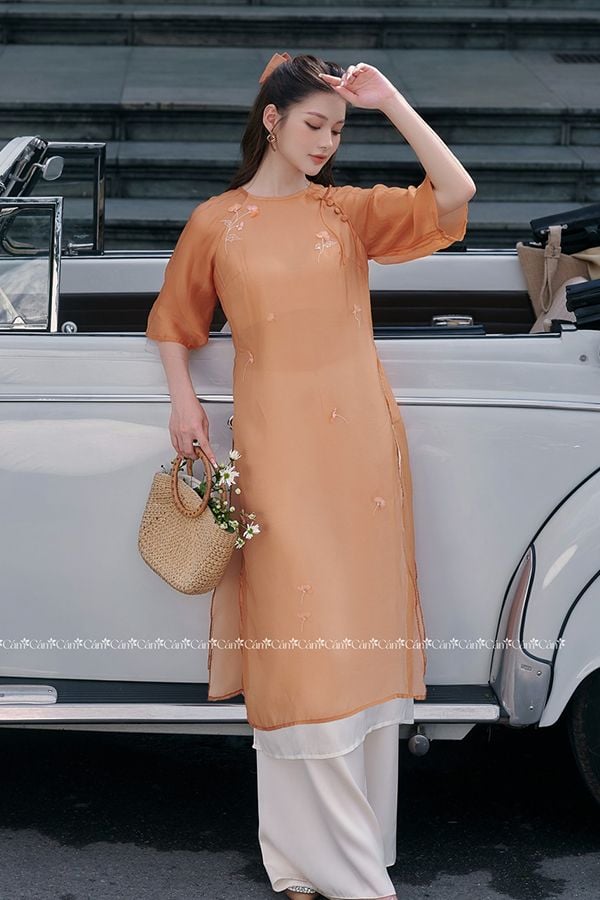 Áo Dài Cách Tân Tay Dài Thêu Hoa ÁO DÀI CÁM