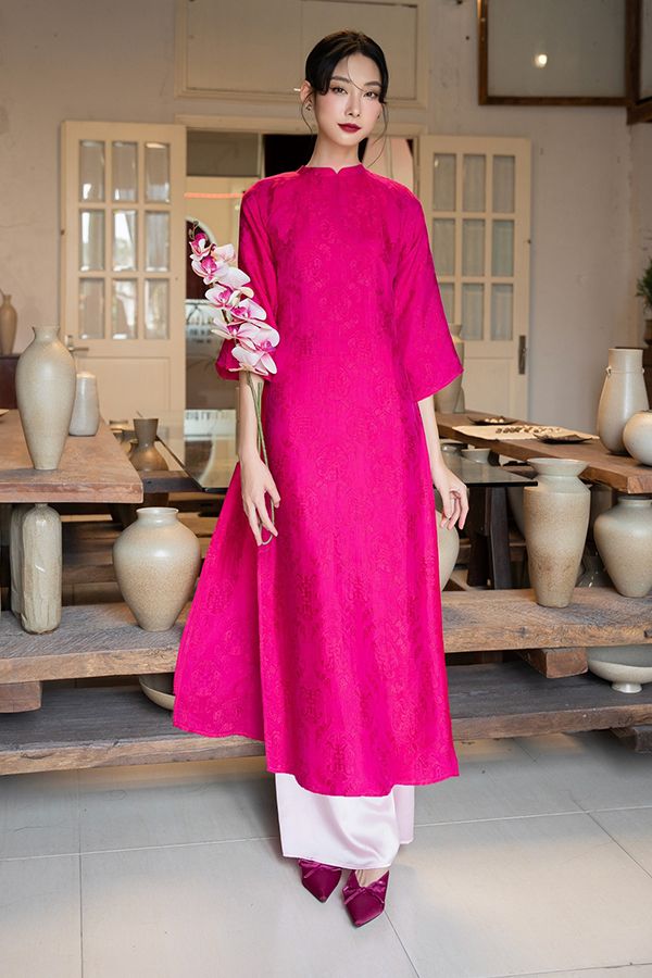 Áo Dài Cách Tân Tay Lửng Cổ Trụ HOIVU