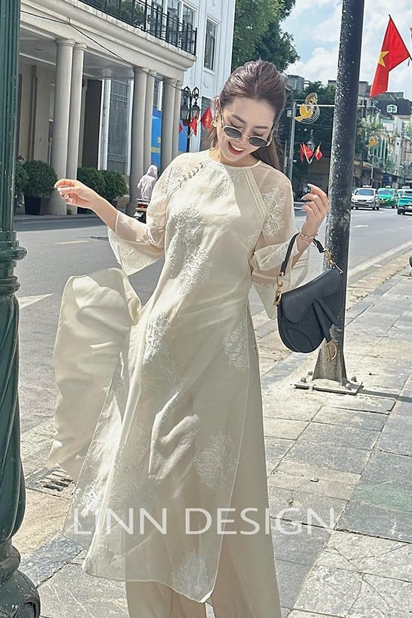 Áo Dài Cách Tân Tay Lửng Họa Tiết LINN DESIGN