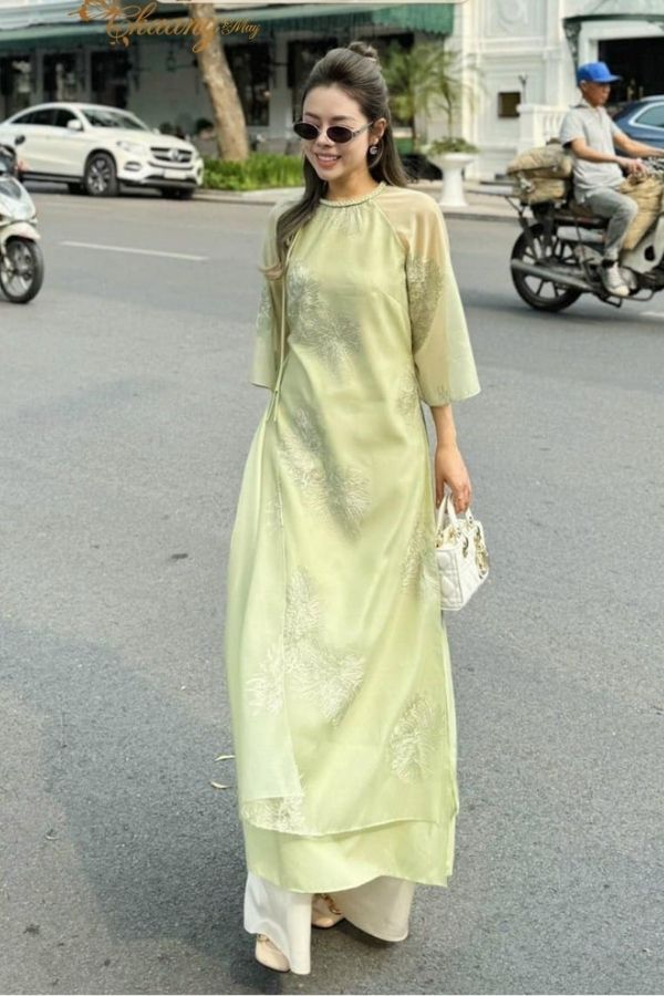 Áo Dài Cách Tân Thắt Nơ Họa Tiết Thêu Combo Bưng Quả 6 Bộ KHAMADE