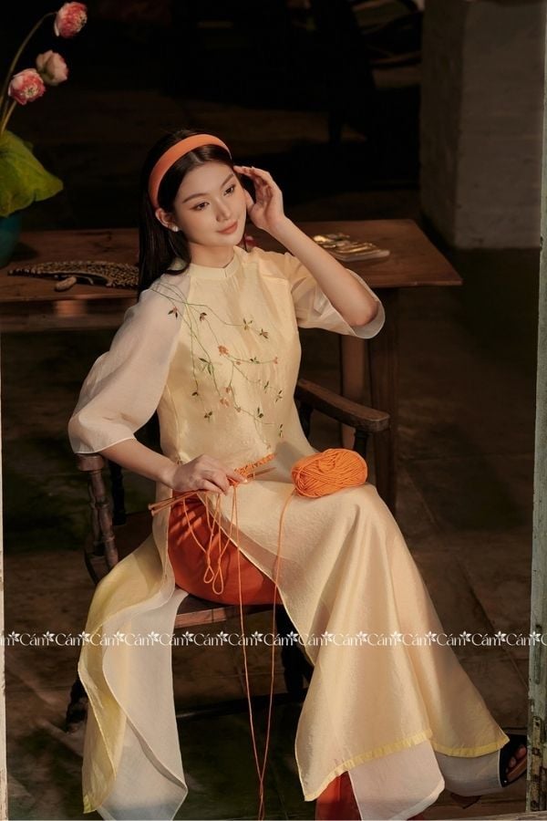 Áo Dài Cách Tân Thêu Hoa Combo Bưng Quả 6 Bộ KHAMADE