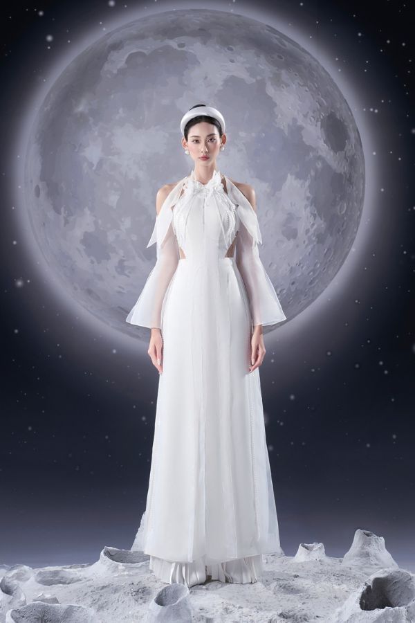 Áo Dài Cổ Yếm Trễ Vai LAM KHUE DESIGN