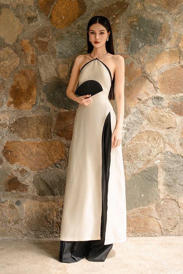 Áo Dài Cổ Yếm Xẻ Tà ONETONE