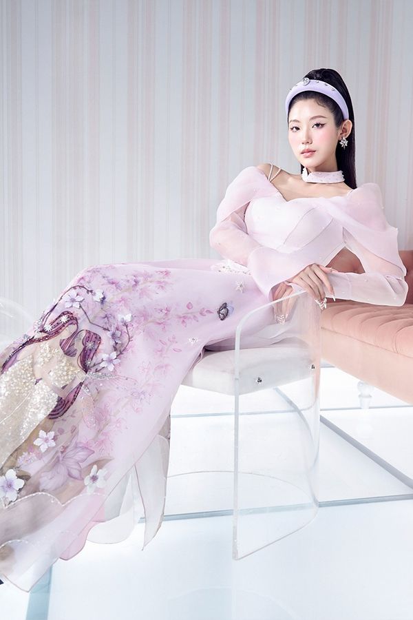 Áo Dài Hai Dây Trễ Vai Thêu Họa Tiết LAM KHUE DESIGN