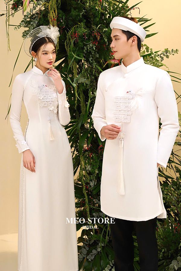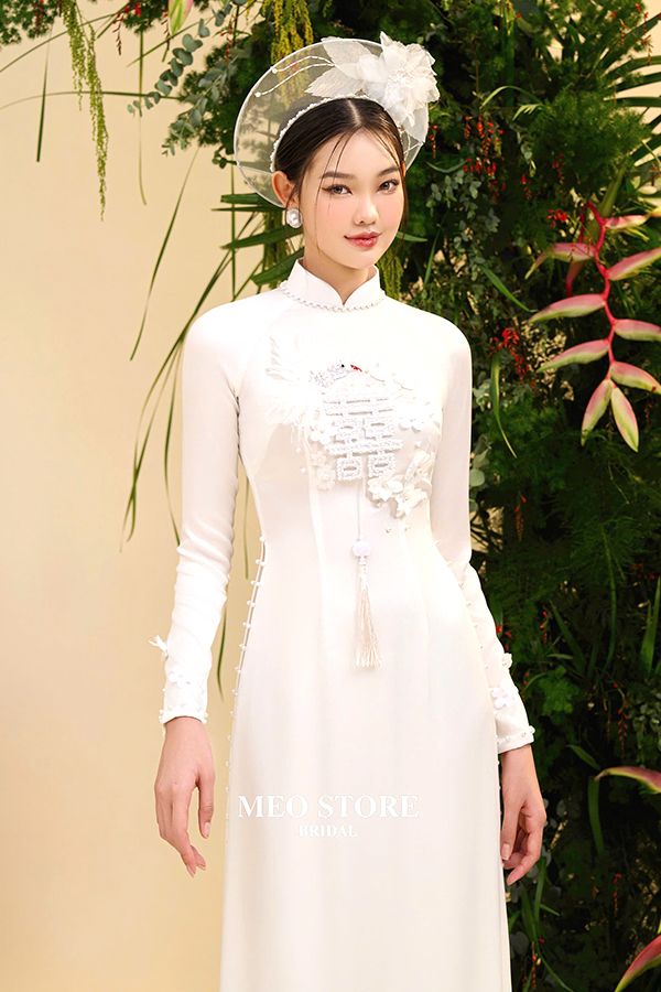 Áo Dài Nữ Truyền Thống Thêu Chữ Hỷ AD00032 MEO STORE