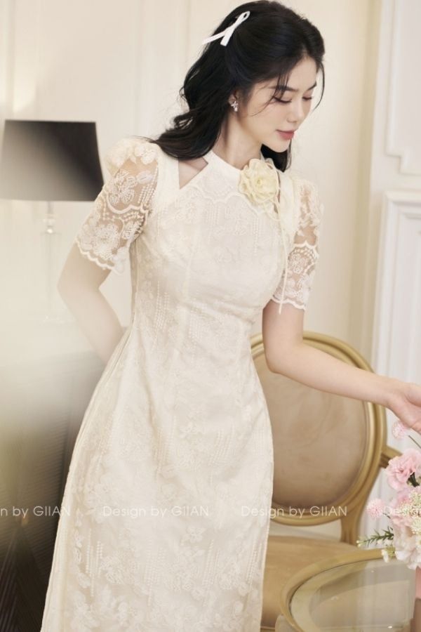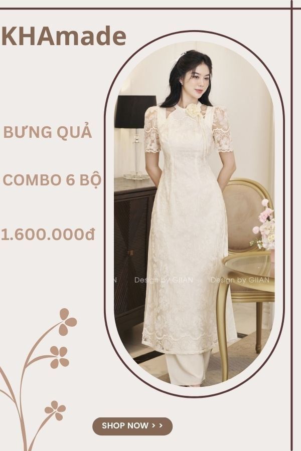 Áo Dài Ren Cách Tân Tay Bồng Combo Bưng Quả 6 bộ KHAMADE