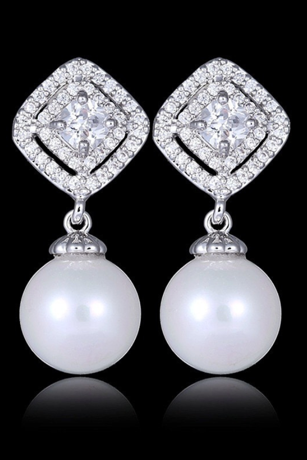 Bông Tai Ngọc Trai Đính Nhiều Đá OMNES