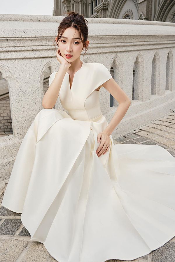 Đầm Midi Cổ Chữ V Dáng Xòe LARMES