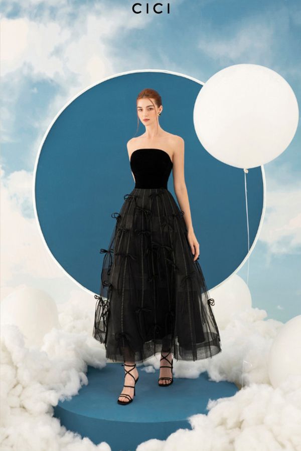 Đầm Midi Cúp Ngực Đính Nơ CICI