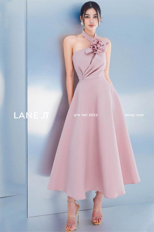 Đầm Midi Đính Hoa Cổ Tròn LANE JT