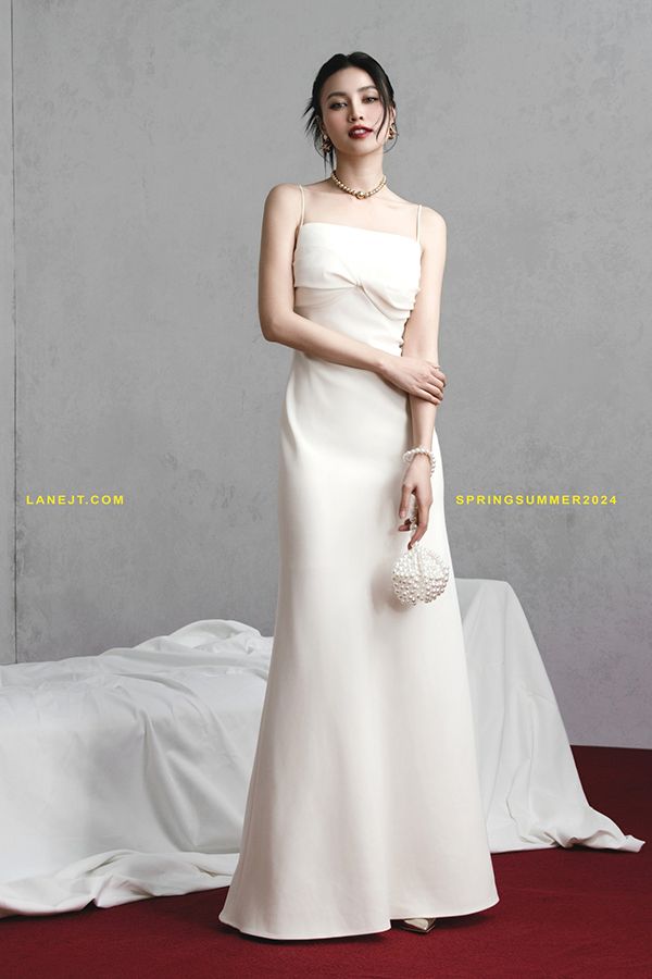 Đầm Midi Hai Dây Nhấn Ngực Regina Front Knot LANE JT