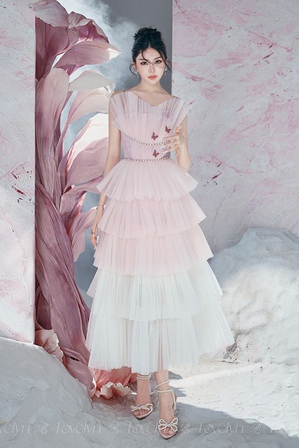 Đầm Midi Hai Dây Xếp Tầng LOVELYN