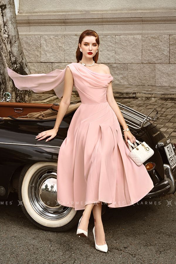 Đầm Midi Lệch Vai Dáng Xòe LARMES
