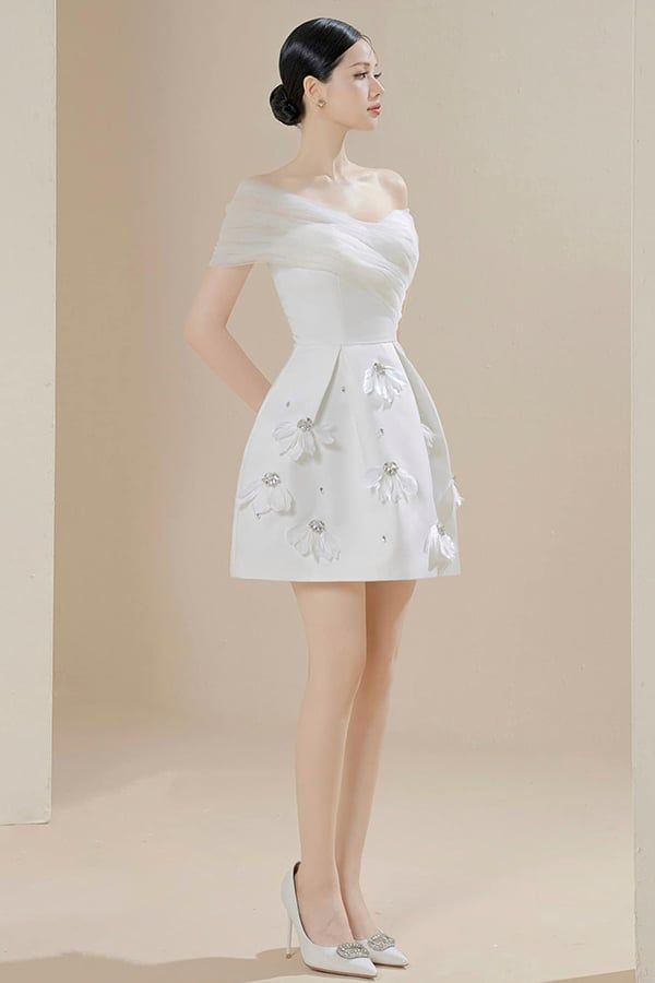 Đầm Midi Trễ Vai Đính Hoa PARAMO