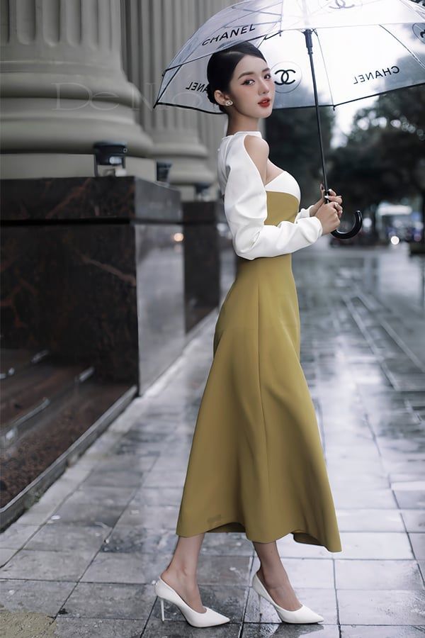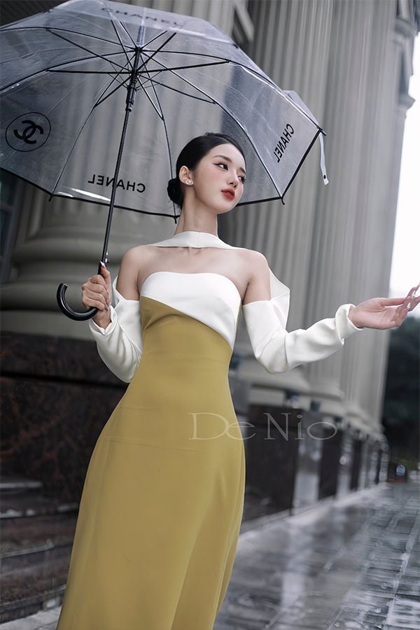 Đầm Midi Trễ Vai Tay Dài DE NIO