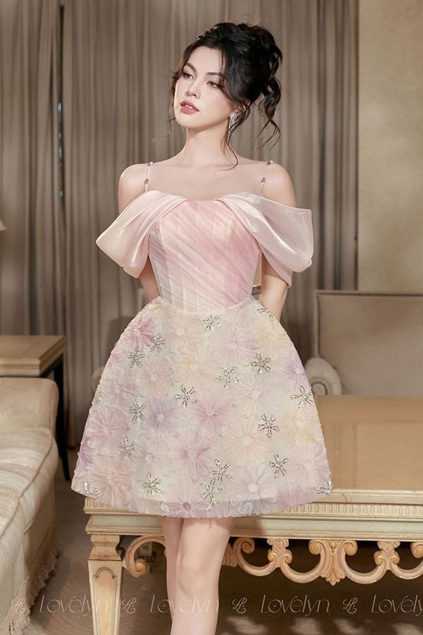 Đầm Ngắn Hai Dây Họa Tiết LOVELYN