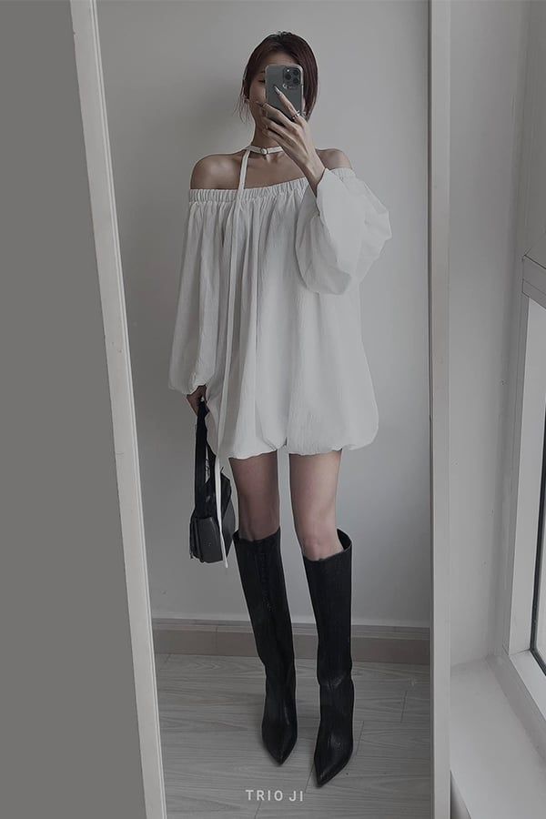 Đầm Ngắn Trễ Vai Tay Dài TRIO JI