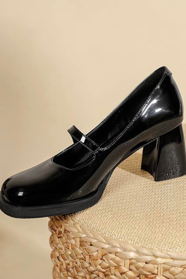 Giày Búp Bê Gót Vuông Da Bóng OMNES