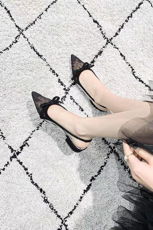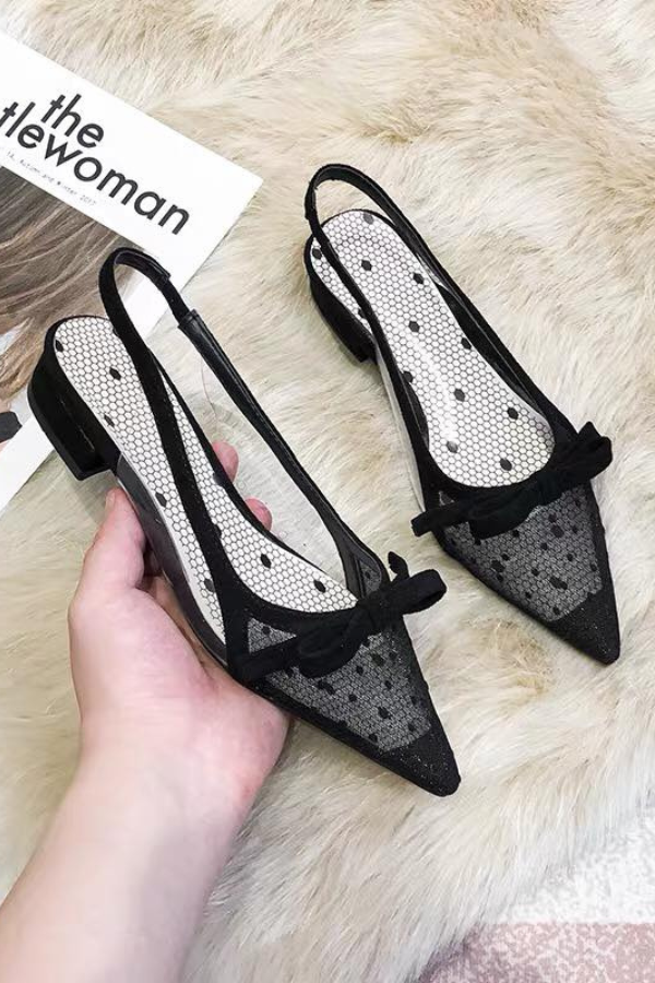 Giày Búp Bê Nơ Lưới Chấm Bi OMNES