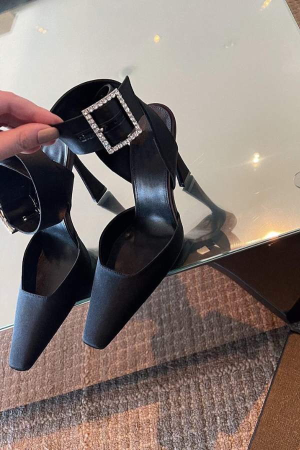 Giày Quai Chéo Hở Gót Tag Đá Vuông Đính Đá OMNES