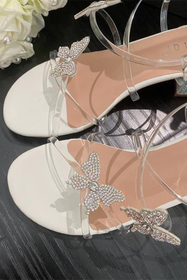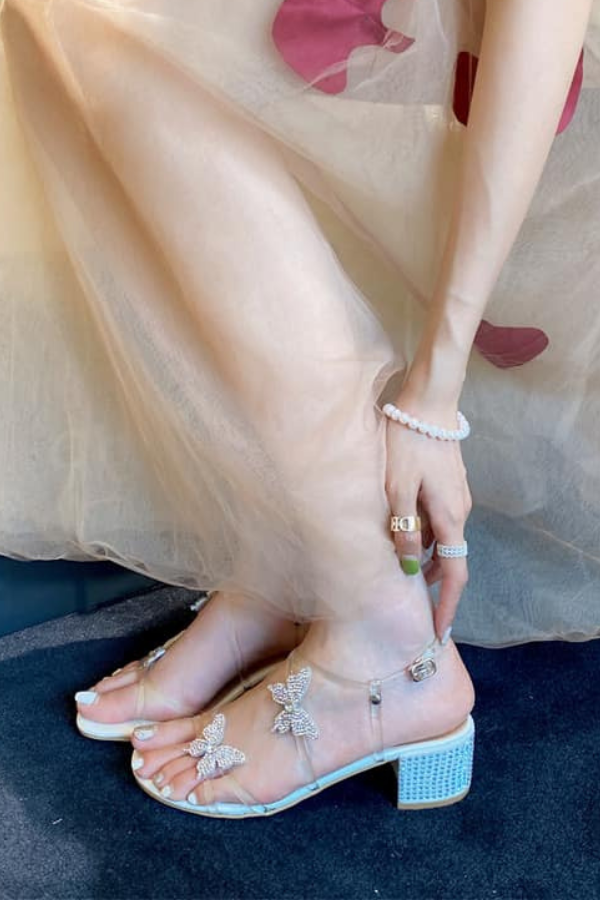 Giày Sandal Dây Mãnh Đính Bướm Đá OMNES